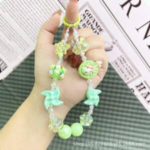 風車食品おもちゃキティ漫画ビーズペンダント手作りジュエリーペンダントポータブルヘッドフォンカバーバッグペンダント女性のための