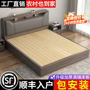 ベッド実木ベッド1メートル8ダブルベッド寝室ベッド賃貸用ソフトベッド1.5m収納ベッド1メートル2人ベッドフレーム