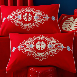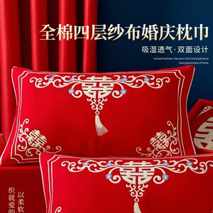 結婚枕タオル結婚祝い純綿のペアは新婚の大きな赤い枕のスカーフと結婚します。