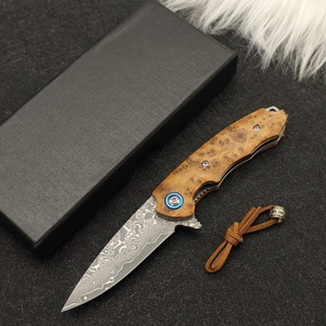 Thuja ダマスカス鋼高硬度ミニナイフ屋外ポータブル折りたたみシャープフルーツナイフポケット