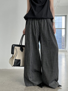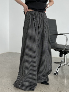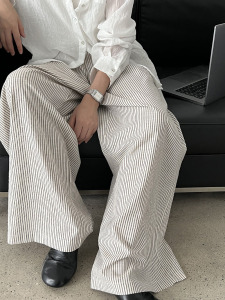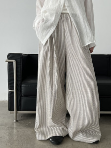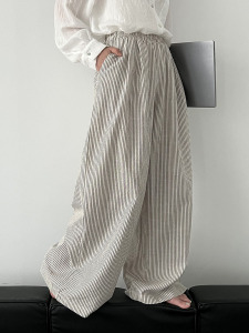 Lushi アメリカンスタイルレイジーストライプカジュアルパンツ女性の夏の新しいルーズストレートパンツドレープワイドレッグパンツ 1907