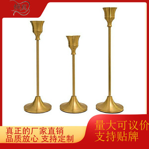 ヨーロッパのゴールデン燭台、鉄のライト高級キャンドルホルダー、キャンドルライトディナー小道具、ロマンチックなレストランのソフト装飾、小さな装飾品