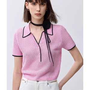 高品質の新しいミントマンボコントラストカラーVネック半袖軽量通気性ポロカラーセーターレディースショートスタイル