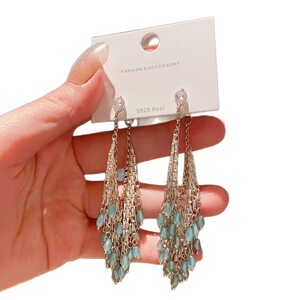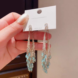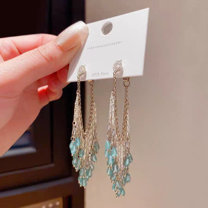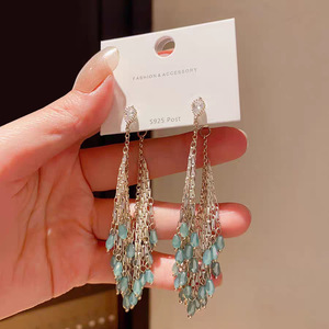 レトロボヘミアンエスニックスタイルタッセルイヤリング女性用クリスタルハイエンドニッチ誇張ロングフェイススリミングイヤリング