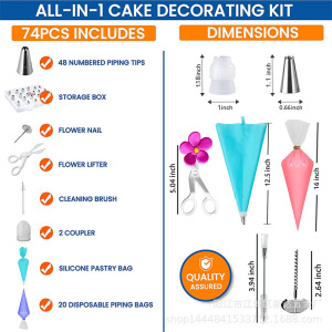 74点セットのケーキの表装の口のケーキのクリームの表装の袋の表装の花の釘の焙煎ツールの大全の卸売り