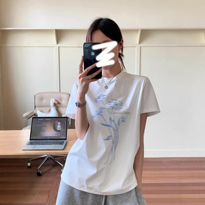 2025 夏の新ニッチシックなデザインプリント半袖 Tシャツレディースカジュアルルーズ痩身ハイエンドトップ t