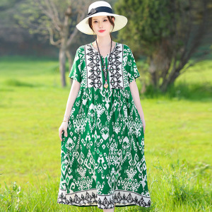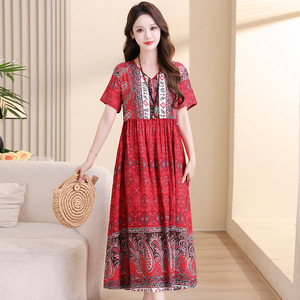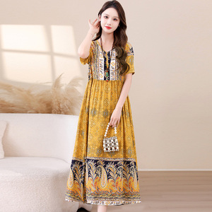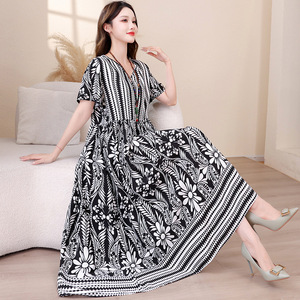 2025年初夏の新しい高級コットンシルクドレス、海辺での休暇、ファッショナブルな三亜ビーチドレス、美しい大きな裾