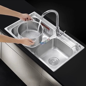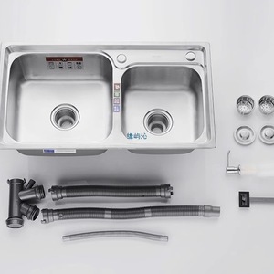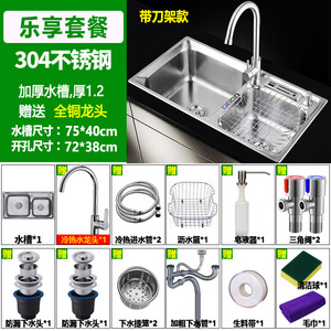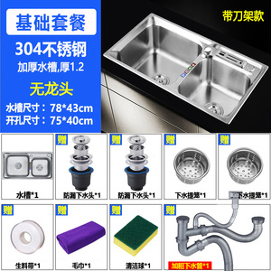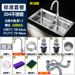 厚みのある 304 ステンレス鋼のシンクダブルスロットパッケージ、ナイフホルダー付きキッチンシンクシンク大小ダブルシンク送料無料
