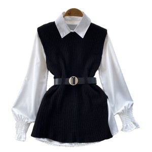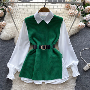 秋冬のゆったりとした長袖白いポロカラートップス、スリット入りベストセーター、軽くて豪華なレディーススーツ、女性用ニットセーター