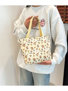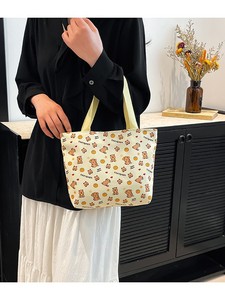 新しいクマプリントキャンバスバッグ、大容量、高価値ハンドバッグ、シングルショルダーニッチ多用途学生トートバッグ