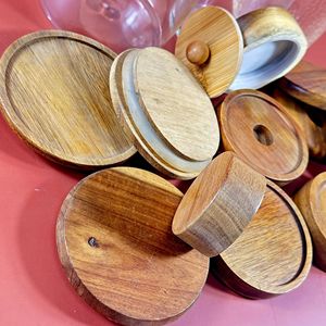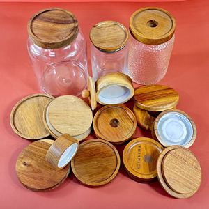 アカシア無垢材木製蓋シリコンリングラウンド木製蓋ガラス密封瓶木製蓋保存瓶収納チューブ木製蓋