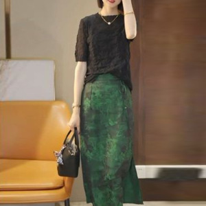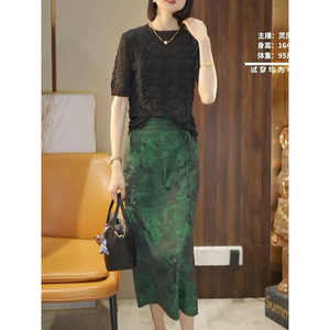 エレガントな女性のための完全なセット 2025 夏の新しいハイエンドのレトロなラウンドネックトップ新しい中国風のスカート