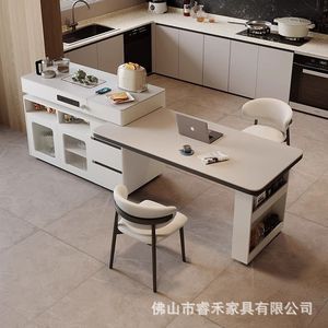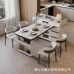 新しいアイランドテーブルシンプルなダイニングテーブル一体型ロックボード小型伸縮式多機能アイランド回転ホームバーテーブル