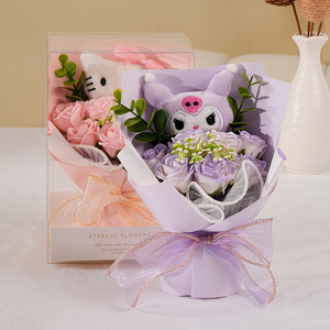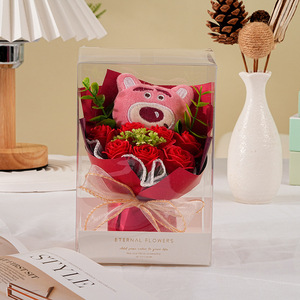 クリエイティブな漫画人形の花束、ミニブーケ、ミーティングローズポケット、不滅の花、ドライフラワー、バレンタインデーのギフト