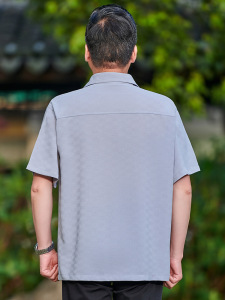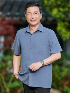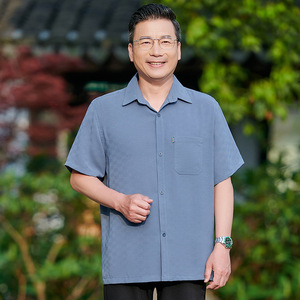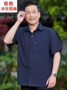 お父さんの大きいサイズの中年のシャツの男性の通気性の半袖の夏の薄いタイプの高級なビジネスの氷の糸の純色のカジュアルなシャツ