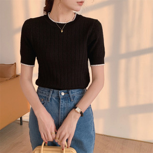 冰丝针织短袖T恤女装夏季2025新款上衣设计感小众宽松圆领白色春