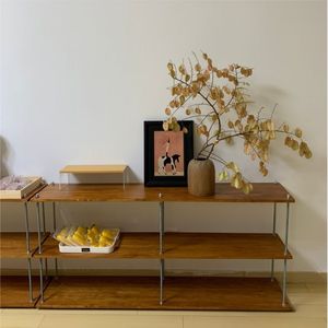 Xiaohongshu diy 同じスタイルの収納ラック無垢材リビングルームバルコニー多層収納ラックキッチンアンティークスタイル本棚フラワーラック