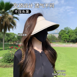 日焼け防止帽子、紫外線防止、空のトップ、大きなつばのサンハット、サイクリングフェイスカバーサンハット、夏用折りたたみ帽子