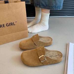 2025新款欧货踩屎感软皮勃肯鞋厚底软皮软底低帮女勃肯拖鞋潮
