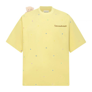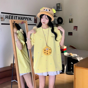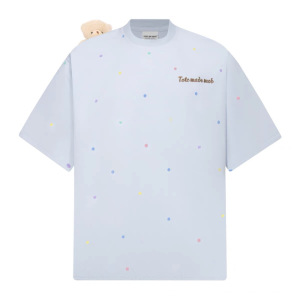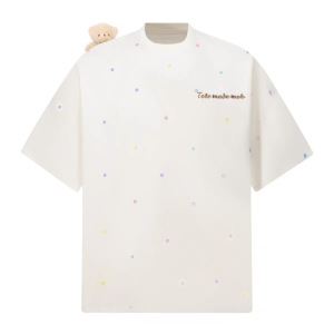 美式复古挂件小熊波点纯棉短袖t恤女夏2025新款小众设计情侣上衣