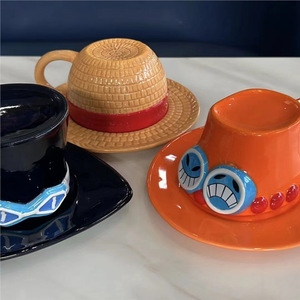 海賊王の周辺の路飛の麦わら帽子の杯の典蔵の金ASLの帽子の漫画の家庭用の陶磁器の杯の創意のデスクトップの置物