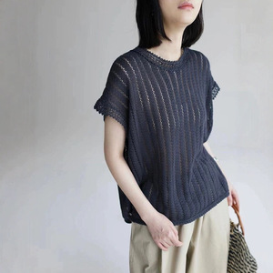 2025 新しい夏スタイル中空アイスシルクニット半袖 T シャツ女性のためのルーズ痩身多用途トップス西洋スタイル年齢軽減薄型
