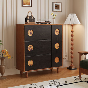 壁に一体型の小さな靴キャビネットを備えた中世スタイルの無垢材の靴キャビネット、フレンチレトロなリビングルームの靴収納キャビネット