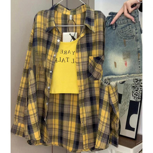 アメリカンイエローチェック柄シャツ女性の春の新作ドーパミンシャツジャケットルーズカジュアルレトロカップルトップ