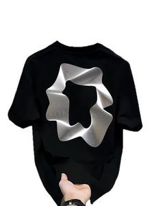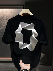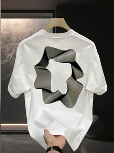 高品质新款重磅轻奢T恤百搭短袖男极简印花流行圆领时尚宽松半袖
