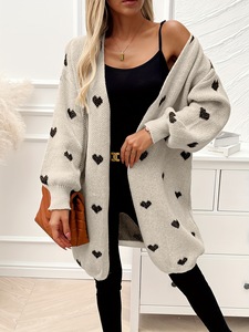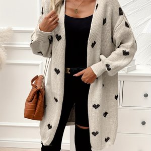 Cozy Heart Pattern Knitted Cardigan Soft Casual Long针织开衫