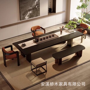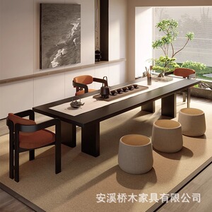 宋代の美的無垢材大型ボードティーテーブルオフィスティーテーブルシンプルクリエイティブホームリビングルーム2025新しいハイエンド
