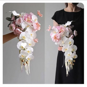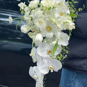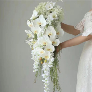 瀑布手捧花新娘仿真花婚纱照影楼拍摄道具文竹蝴蝶兰森系水滴手捧