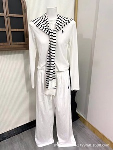 ラフリネンスーツカジュアルニットトップ+ストライプショール+白ズボンレイジースタイルスリムスリーピーススーツ女性用