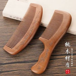 天然桃の木製櫛、抜け毛防止、桃の木製櫛、男性と女性の長い髪専用、滑らかな髪用、桃の木製櫛、静電気防止