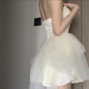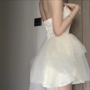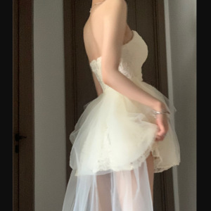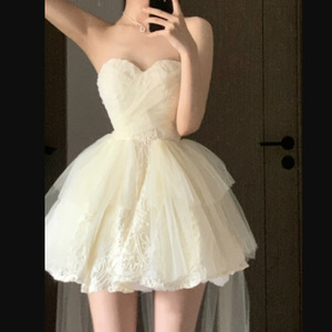 フレンチレースチューブトップドレス女性の夏の誕生日パーティードレススーパーフェアリーウエストトレインプリンセススカート