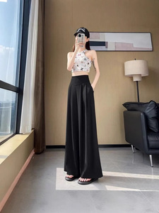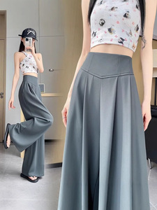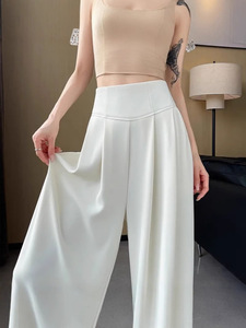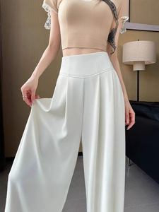2025 春と秋の新スタイルドレープハイウエストスーツパンツ女性のワイドレッグパンツストレートカジュアルルーズ大きな裾フロアレングスパンツ