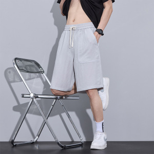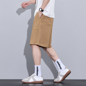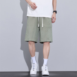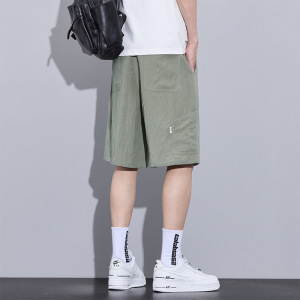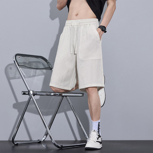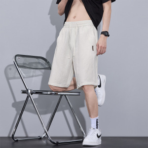 リネンショーツメンズ夏多用途通気性ストレートミッドパンツ薄手ルーズトレンディカジュアル5点パンツ