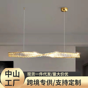 ポストモダンクリスタルダイニングランプクリエイティブデザイナーロングバーテーブルイタリアンスタイルリビングルームワンラインシャンデリアクロスボーダーランプ