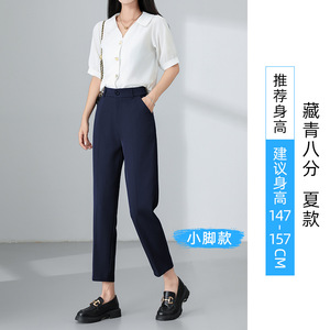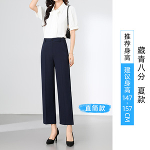 女性用黒通勤スーツパンツ、夏用薄手ドレープスリム大きいサイズ9点ストレートパンツ、仕事面接用、プロスーツパンツ