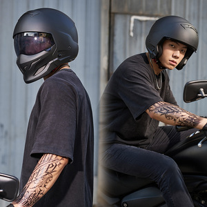 复古摩托车头盔全盔电动机车男女款安全帽夏季四季蝎子盔组合半盔