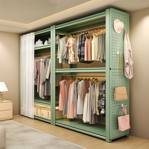 衣柜家用多层开放式衣架卧室出租房收纳落地置物架书架简易衣帽架