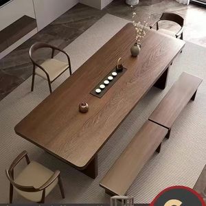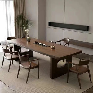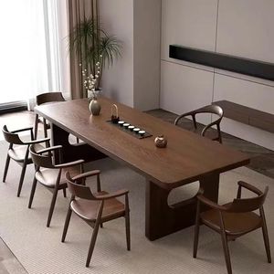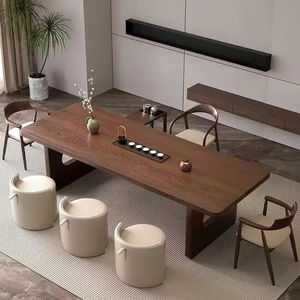 無垢材の大きなボードティーテーブルと椅子の組み合わせモダンシンプルな中国風のライト高級リビングルームログホームオフィスティーテーブル