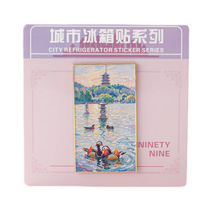 杭州文創冷蔵庫は西湖三潭印月雷峰塔油絵中国都市観光記念品のお土産を貼っています。