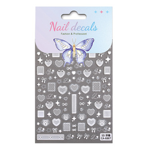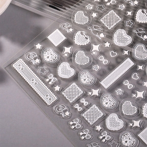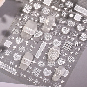 ホワイトレースラブネイルアートステッカー 5D レリーフ立体多用途レースネイルステッカージュエリー CA スタイル