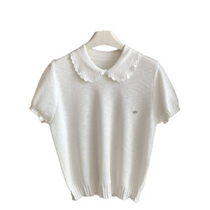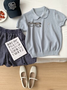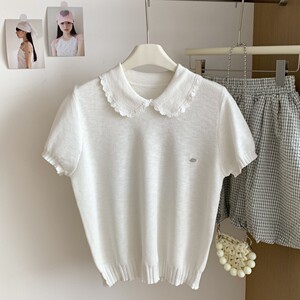 韓国ベビードールカラー半袖Tシャツ夏の新しい甘い年齢を減らす気質ニットセーターレースレーストップ