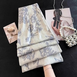 ライト高級綿とリネンプリントワイドレッグパンツ女性の夏薄い 2025 新しいテンセルリネンヨーロッパ人気のストレートパンツ