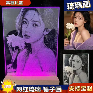 ガラスの画像の真人の写真のハンマーは瑠璃を描いて絵を叩いて非遺品の彫刻のカップルの誕生日の贈り物を代行します。