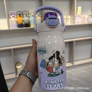 高颜値手提げ学生ポットかわいいストローコップ漫画グラデーション新型スポーツクロスボーダー保温大容量