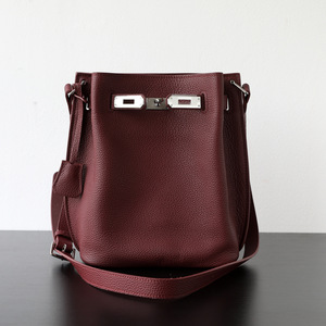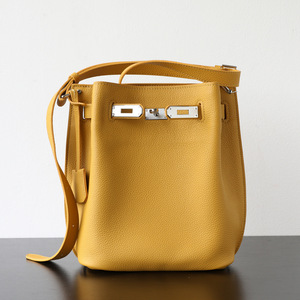 小衆軽豪華頭層牛革バケツバッグファッションカジュアル脇下シングル肩斜めショルダーバッグ縦型通勤ケリーバッグ