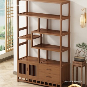 架实木中式茶叶展示柜茶架子置物架茶室茶柜茶具摆件收纳柜子